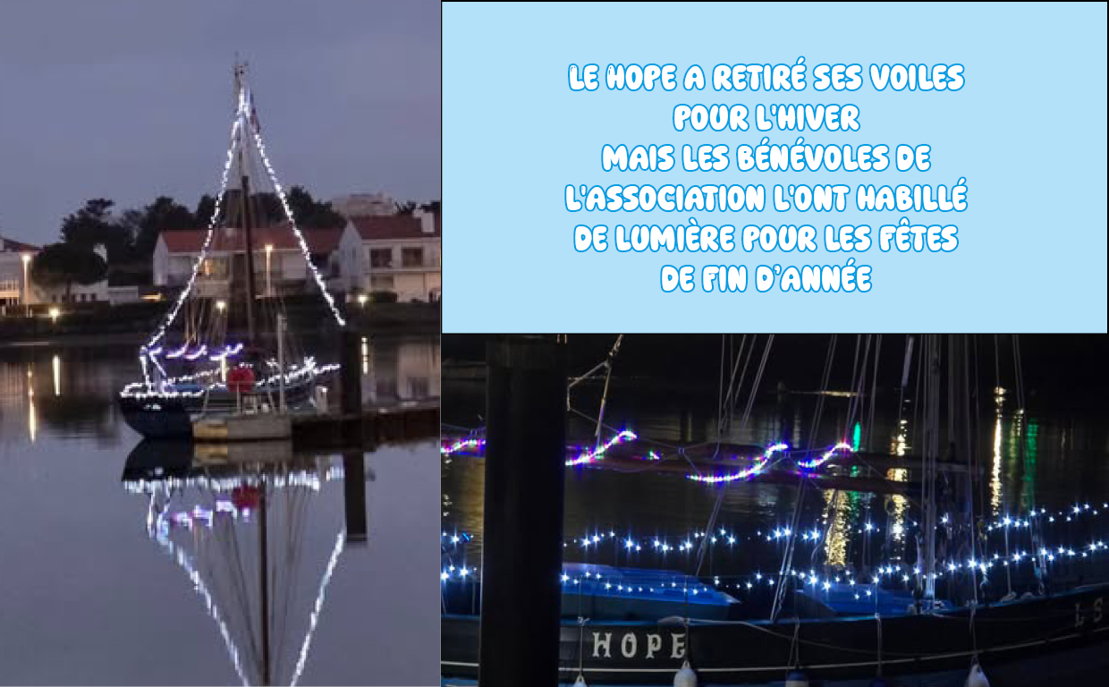 A la demande de Madame Josette Alabert Adjointe au Patrimoine et au Développement du tourisme et en accord avec la Présidente Françoise Morin de l'association SUROIT ainsi que les 11 membres du conseil d'Administration qui gèrent tout ce qui concerne sa navigation et son entretien courant, le HOPE participera aux prochains évènements de la Ville de Saint Gilles Croix de Vie et plus particulièrement pour la nuit des jardins le samedi 12 septembre et les fêtes du patrimoine le samedi 19 et le dimanche 20 septembre 2020.